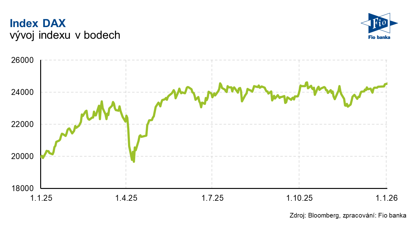 Pozornost byla také nadále upřena na německé automobilky, které již delší dobu zatěžuje růst konkurence v Číně, regulatorní normy a slabší globální poptávka. I přes všechny uvedené problémy dokázala většina automobilek uzavřít rok 2025 se ziskem. Bavorská automobilka BMW posílila o 24,5 %, Volkswagen o 23,9 % a Mercedes Benz Group zakončil rok růstem o 21 %. Výjimkou byly akcie Porsche (-17,8 %), které byly společně se zdravotnickou společností Sartorius vyřazeny v průběhu září z indexu DAX.