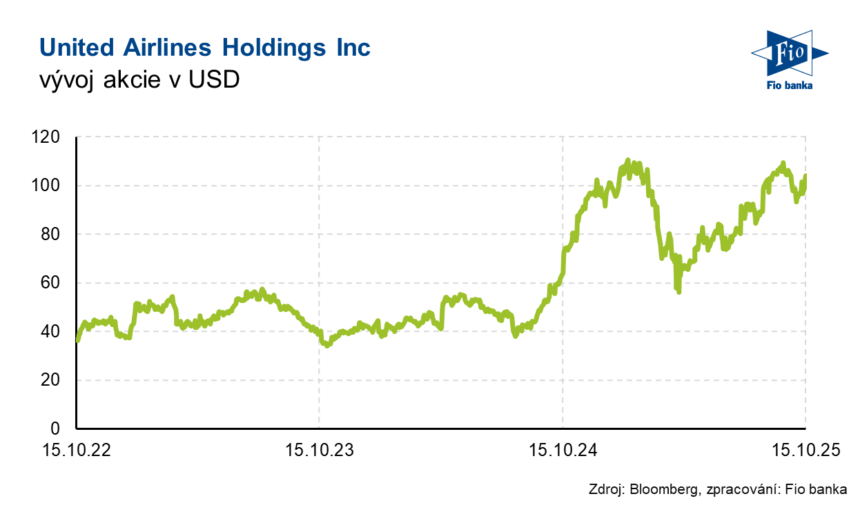 Akcie United Airlines Holdings Inc (UAL) včera uzavřely růstem o 0,9 % na 104,05 USD | |||