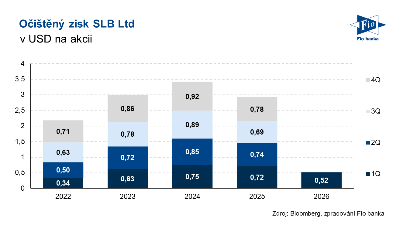 Americká společnost SLB (dříve Schlumberger), která poskytuje služby v oblasti ropného průmyslu, oznámila výsledky hospodaření za 1. čtvrtletí roku 2026. Očištěný zisk na akcii dosáhl 0,52 USD dle očekávaní analytiků. Na úrovni tržeb společnost mírně překonala odhady, provozní peněžní toky zůstaly pod konsensem Wall Street. Firma zároveň schválila čtvrtletní dividendu ve výši 0,295 USD na akcii.